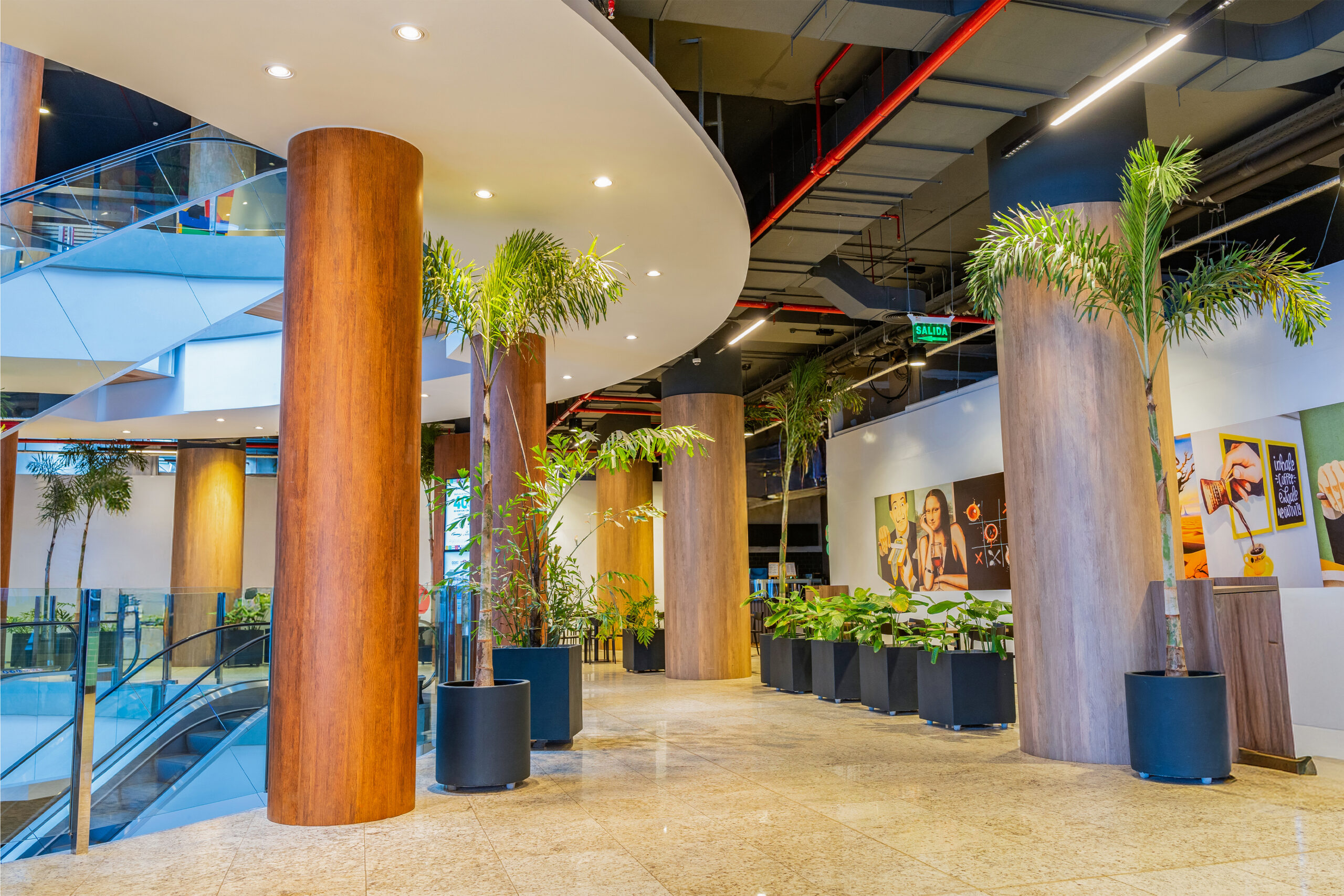 Modus Vivendi - Shopping Costanera - Teto Vinilico+ Origens Angelim by Talt aplicado nos pilares - Encarnación, PY – Foto: Tokorre