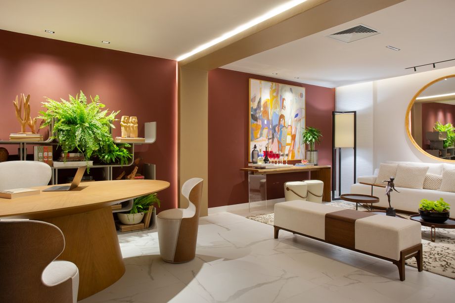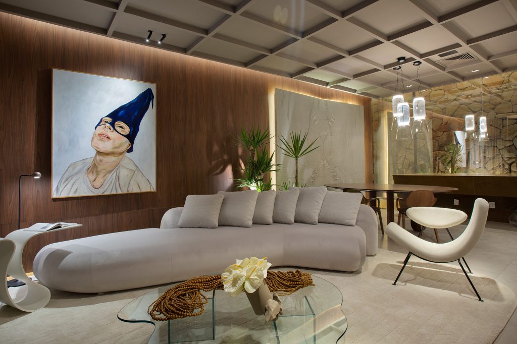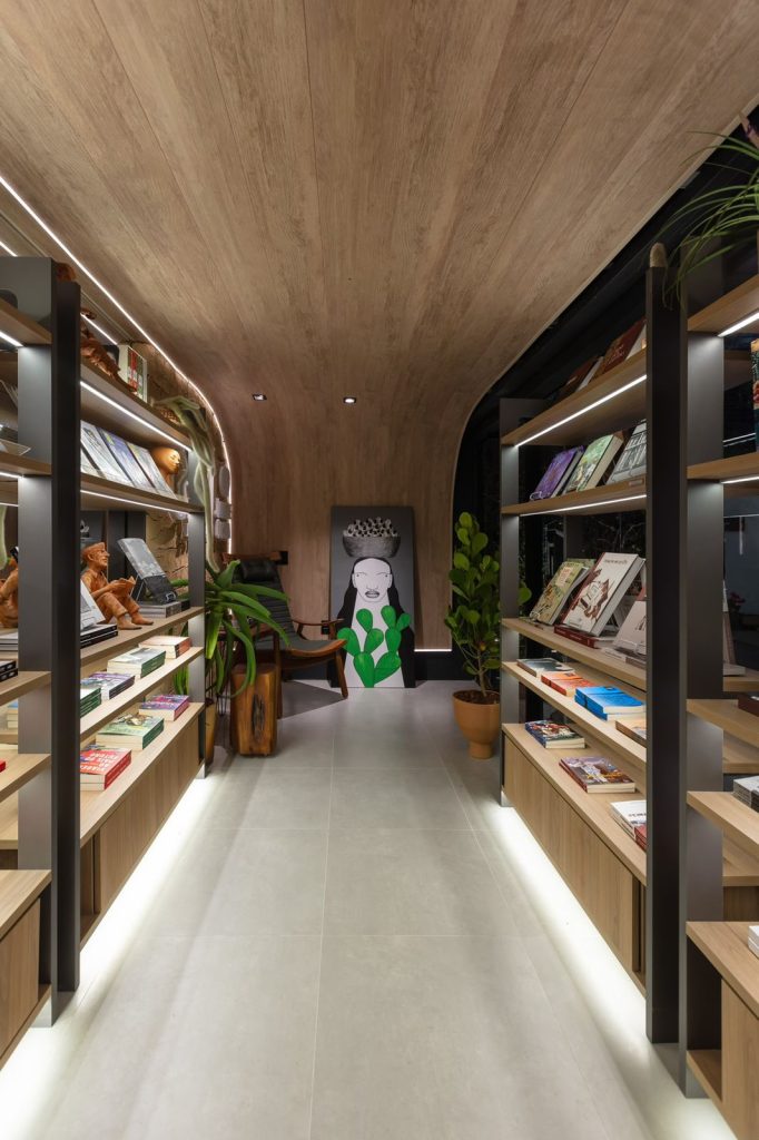 A flexibilidade do produto permitiu que os arquitetos trouxessem originalidade ao ambiente, surpreendendo a todos com uma curvatura no teto que direciona nossos olhares para o livro da arquiteta pernambucana Janete Costa, à venda.