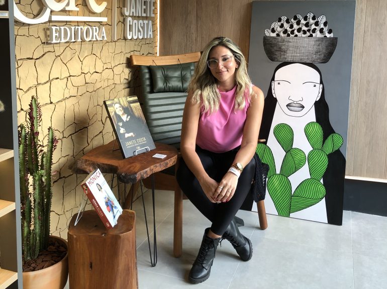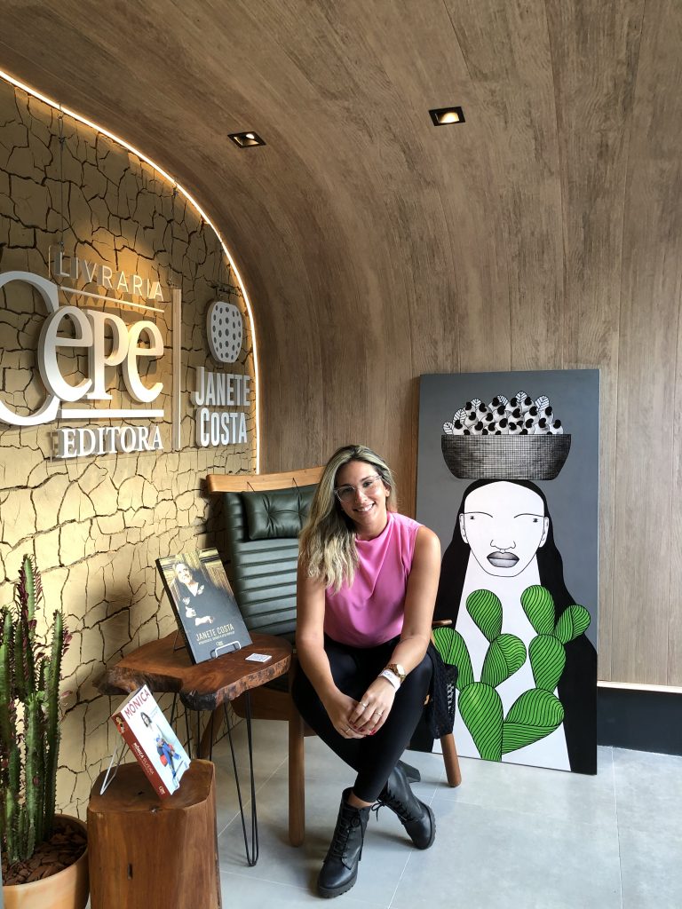 Ponto focal instagramável em destaque na livraria Cepe. Claro que não resisti e garanti meu registro nesse cantinho super style! | Foto: Arquivo pessoal.