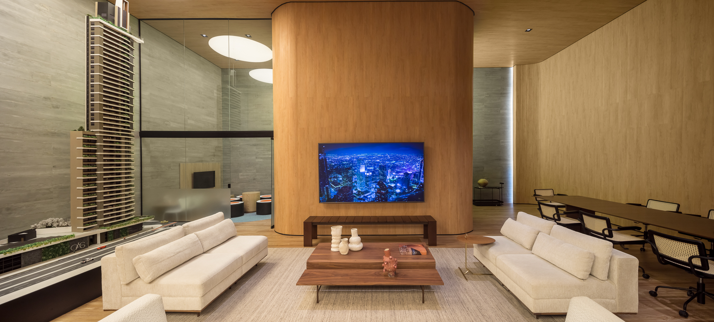 A renomada construtora GT Building escolheu o Teto Vinílico para integrar seu espaço de vendas, criando uma experiência única sob a orientação visionária do Arquiteto Marcos Bertoldi. O ambiente traz harmoniosa aliança entre cores, formas e sustentabilidade.