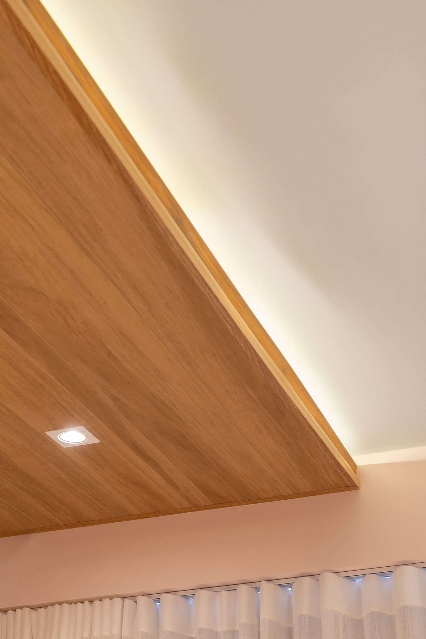 Acabamento com spot e fita de LED.