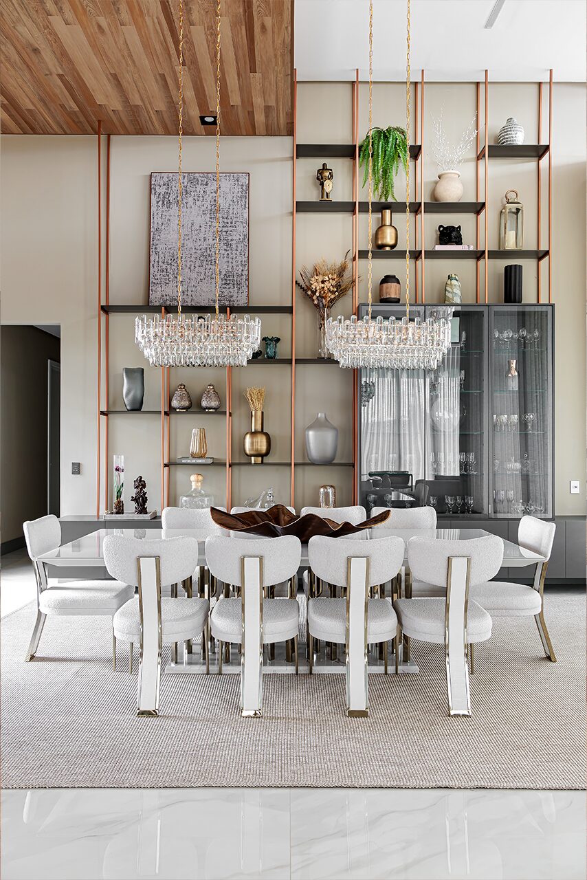 “O grande desafio foi manter a imponência do espaço aliada à sensação de acolhimento. Por isso, criei um detalhe em ‘L’ com Teto Vinílico, que percorre a parede principal e o teto, criando um abraço arquitetônico. Mais do que acabamento, ele se tornou a identidade do projeto”, afirma Cris Nunes.