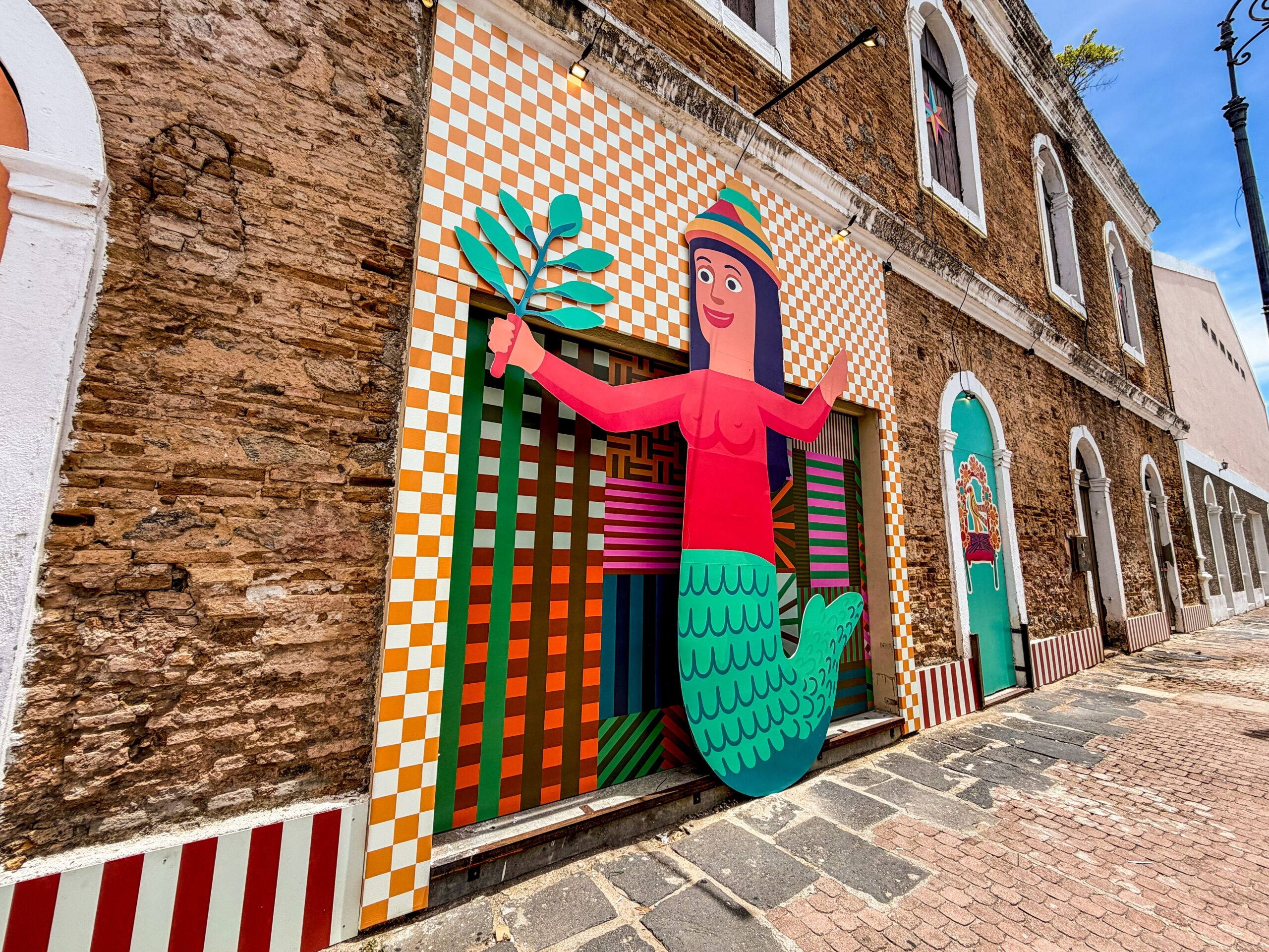 Entre os destaques da edição, a fachada do Espaço Armazém, assinada pela arquiteta Yara Carvalho, propõe uma leitura contemporânea da cultura alagoana ao transformar um edifício histórico em uma composição vibrante de cores, grafismos e texturas.