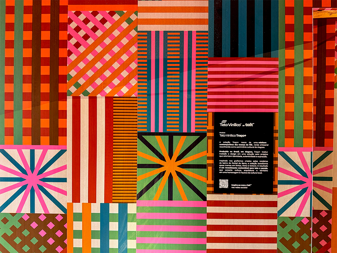 Inserido nesse contexto, o Traço+ atua de forma integrada à narrativa do projeto. Inspirado no Filé do Pontal da Barra, patrimônio cultural do estado, o revestimento traduz os grafismos do fazer artesanal em linguagem arquitetônica, dialogando com outras referências presentes no espaço.
